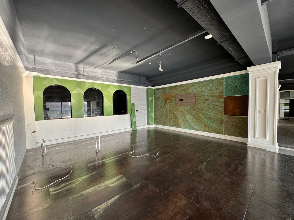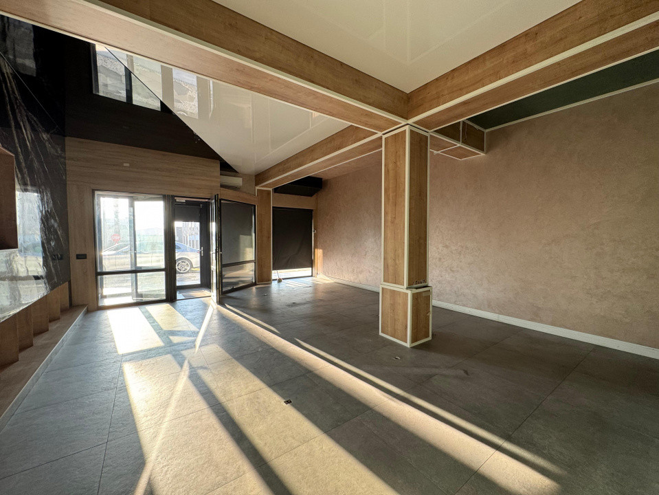 Parter: zonă de expunere cu vitrină stradală amplă, vizibilitate foarte bună și lumină naturală pe tot parcursul zilei